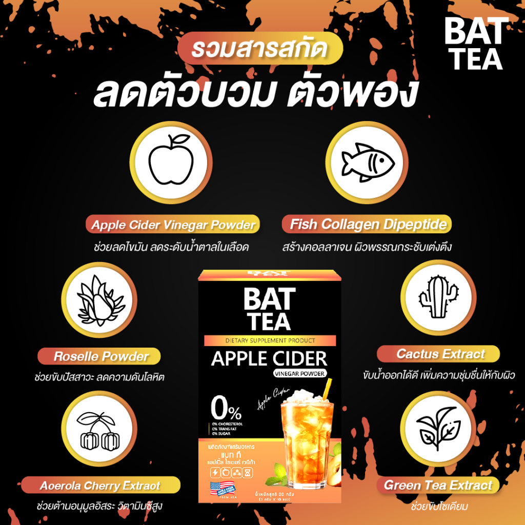#BATTEA ช่วยลดบวม พุงยุบ ขับโซเดียมBAT TEA APPLE CIDER VINEGAR POWDER (DIETARY SUPPLEMENT PRODUCT)