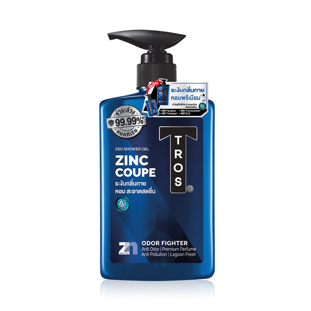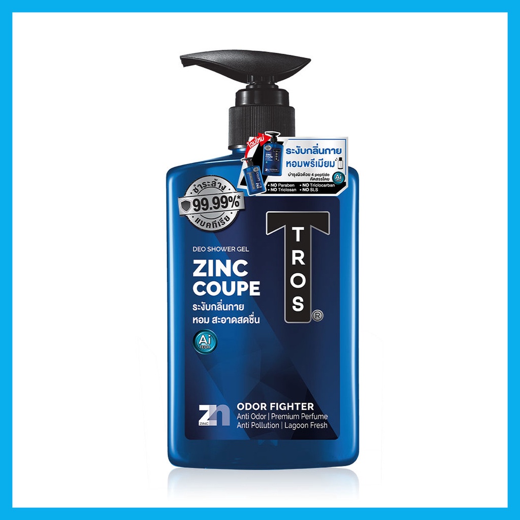 TROS Coupe Deo Shower GelZinc & Lagoon Water 450ml ครีมอาบน้ำสูตร Lagoon Water Active ช่วยทำความสะอาดผิวคุณได้อย่างล้ำลึก ดูดซับสารตกค้างจากมลภาวะและสิ่งสกปรก พร้อมให้ความหอมแนวน้ำหอม Counter Brand หอมติดผิวนาน• ทำความสะอาดผิวได้อย่างล้ำลึก