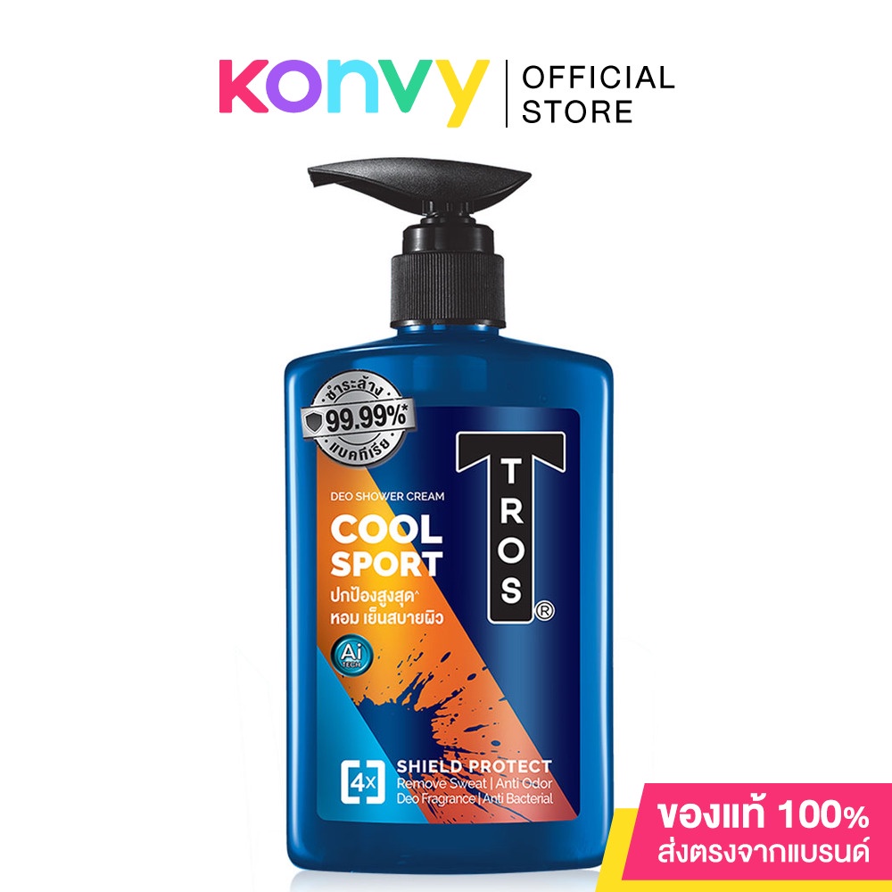 •TROS Deo Shower Gel Cool Sport 450ml #Orange ปกป้องมั่นใจ ไร้กลิ่นกาย ครีมอาบน้ำระงับกลิ่นกาย เหมาะสำหรับ Sport Men Lifestyle พลังปกป้องสูงสุดจาก 4X Shield Protect ปกป้องกลิ่นกายยาวนาน