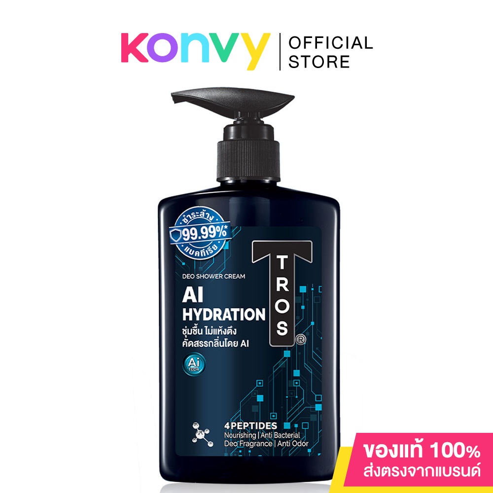 •TROS Deo Shower Gel AI Hydration 450ml #Black ผลิตภัณฑ์อาบน้ำระงับกลิ่นกายพัฒนาวัตถุดิบโดยเอไอ ช่วยคัดสรรน้ำหอมให้เหมาะสม ตอบโจทย์สำหรับผู้ชาย เพื่อลดกลิ่นไม่พึงประสงค์ และมี 4 Peptides บำรุงผิวให้ชุ่มชื้น และดูสุขภาพดี ไม่แห้งตึง