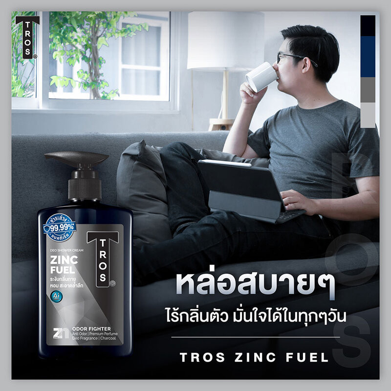 Cr.facebook.com/TROSThailandTROS Zinc Fuel Deo Shower Cream 400ml ครีมอาบน้ำ ช่วยชำระล้างแบคทีเรีย มอบกลิ่นหอมคัดสรรโดย AI Technology ช่วยระงับกลิ่นกายได้ยาวนาน