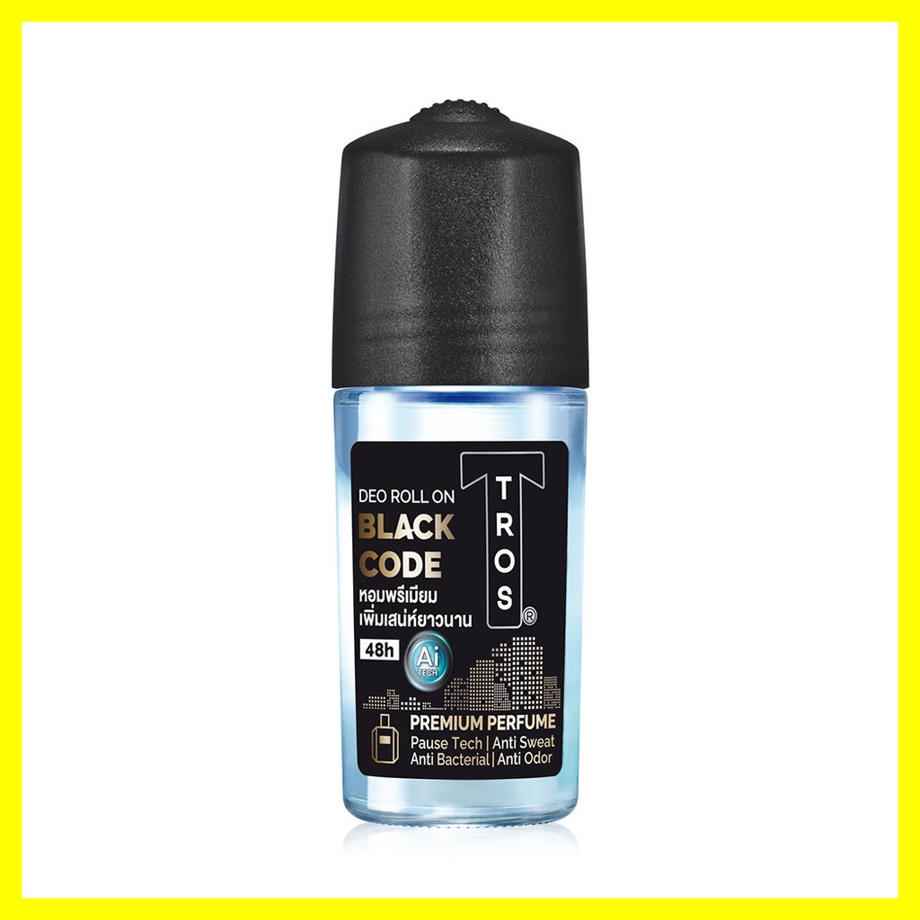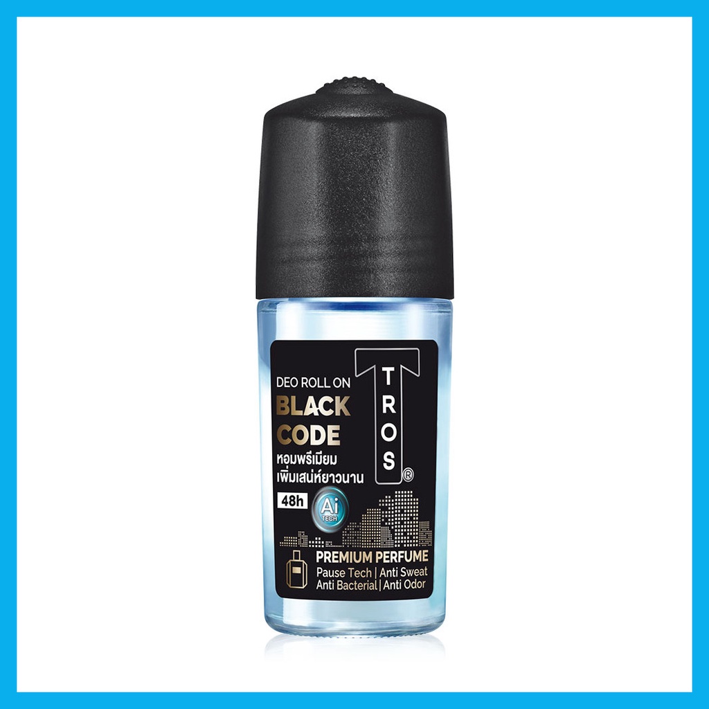 TROS Deo Roll On Black Code 45ml ครั้งแรกของ Asia ที่ใช้ AI เข้ามาพัฒนาสินค้ากับผลิตภัณฑ์โรลออนระงับกลิ่นกายสำหรับผู้ชาย คัดสรรน้ำหอมโดย AI ที่ช่วยเพิ่มเสน่ห์ของผู้ชายขั้นสุด มาพร้อมแนวกลิ่นความหอมระดับพรีเมี่ยม•เทคโนโลยี Actimood ที่ช่วยเสริมแนวกลิ่น สร้างเสน่ห์ให้กับผู้ชาย