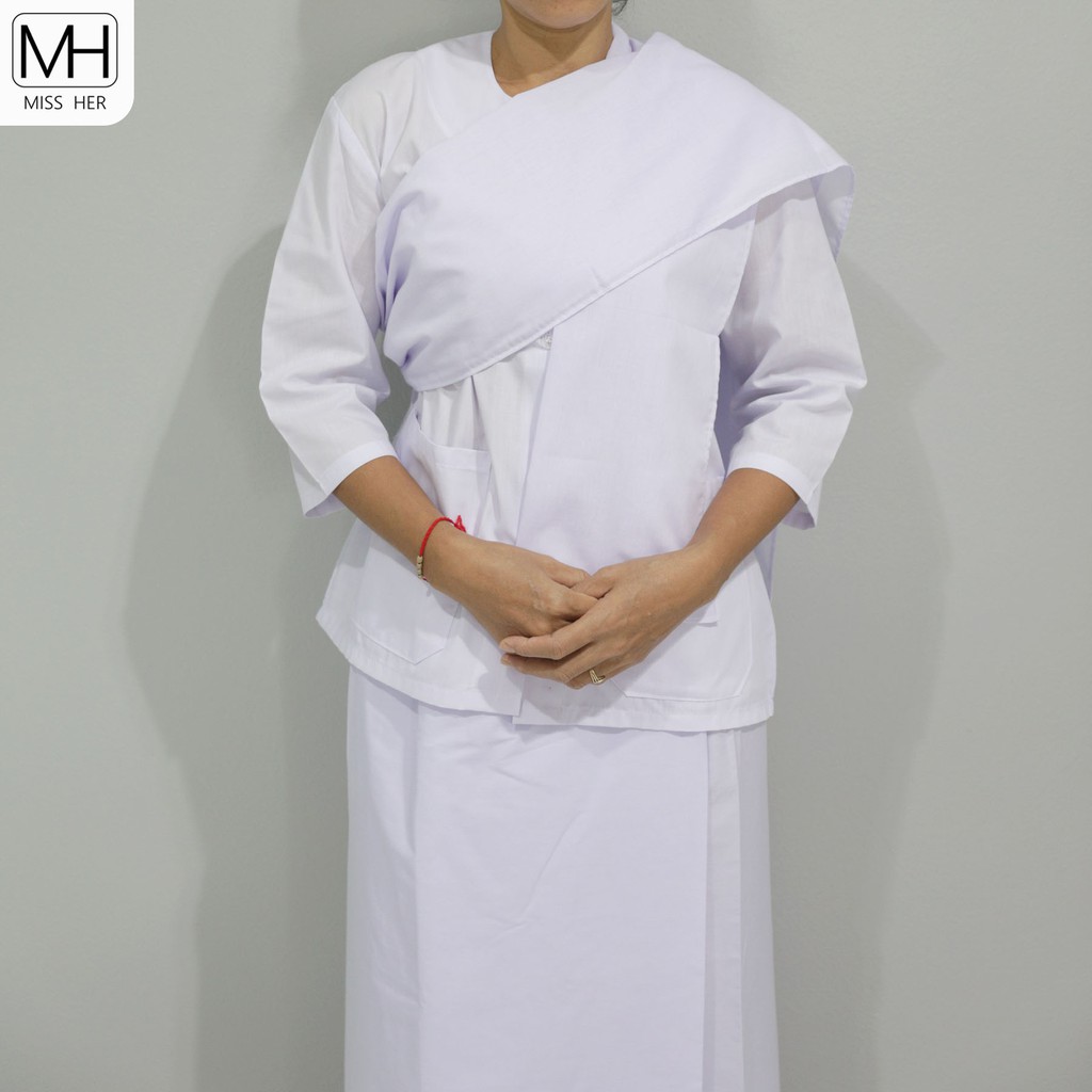 ชื่อสินค้า: ชุดปฏิบัติธรรม ชุดถือศีล ชุดขาวของผู้หญิงขายแยก เสื้อ ผ้าถุงเอวยาง
