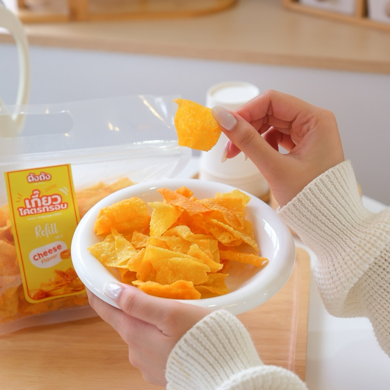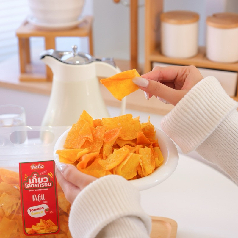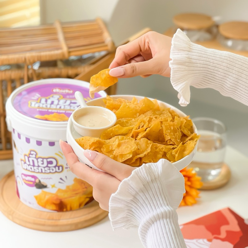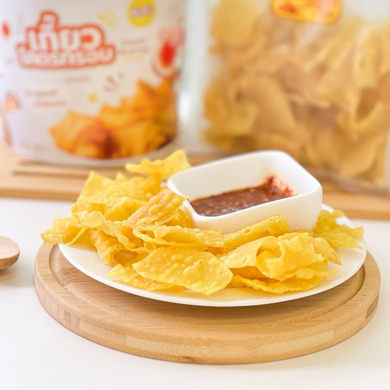 แป้งเกี๊ยวทอดสดใหม่ คลุกผงปรุงรส ทานเล่นเพลินๆ