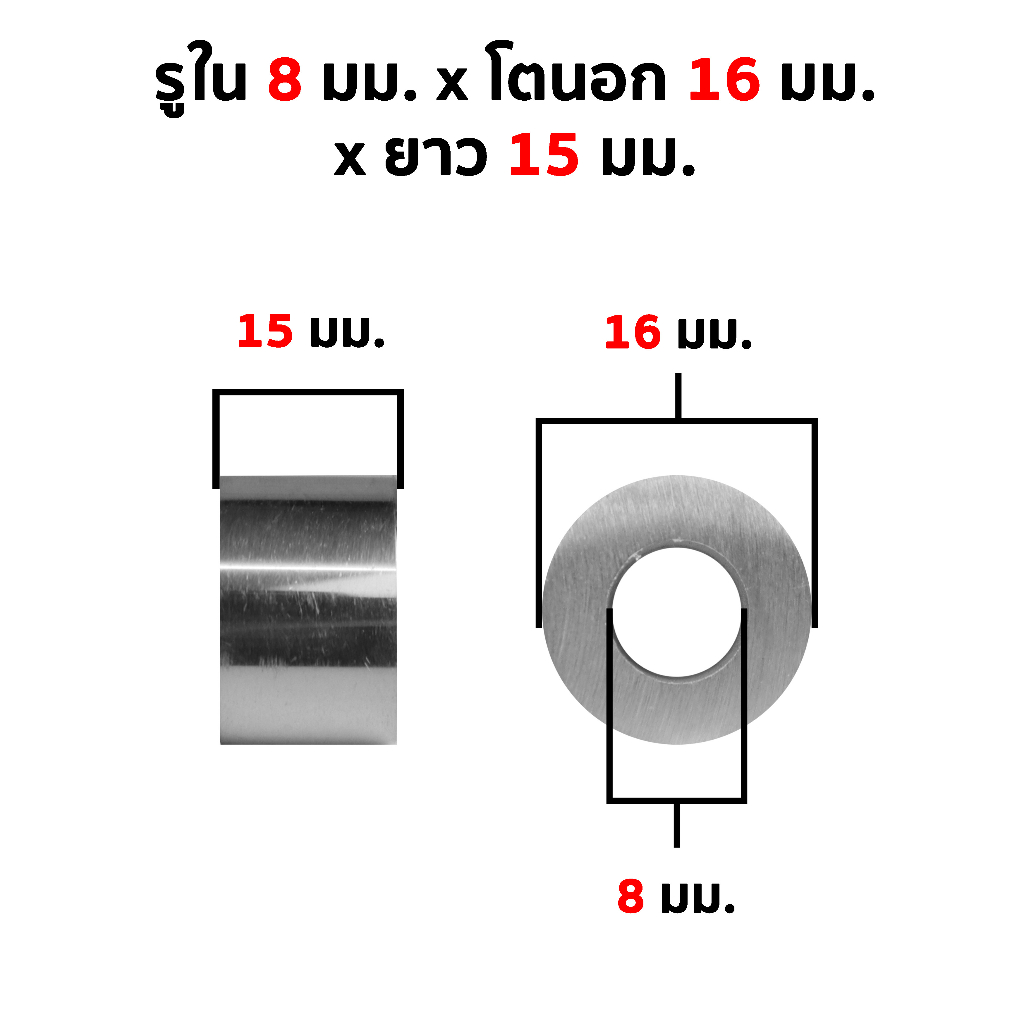 ● รูใน 8 มม. รอบนอก 16 มม. ยาว 15 มม.