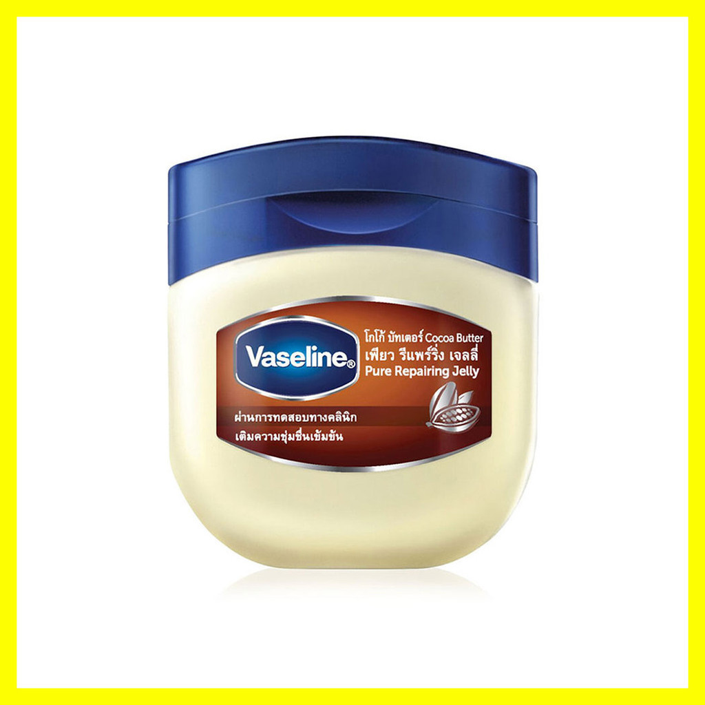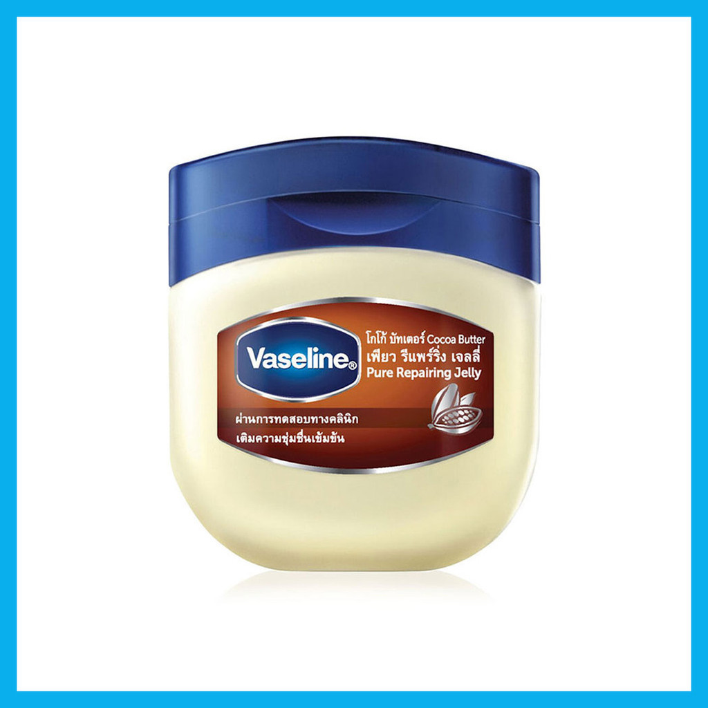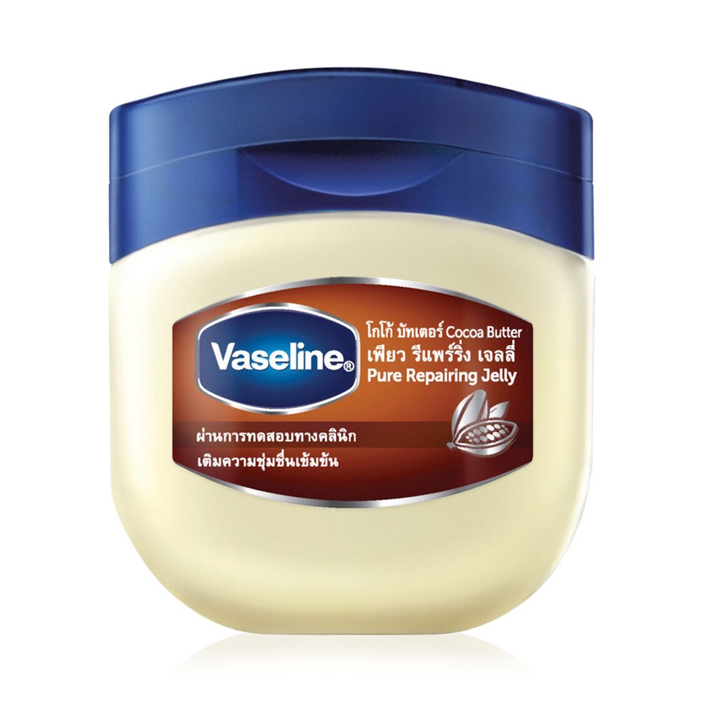 Vaseline Cocoa Butter Pure Repairing Jelly 50ml เจลลี่บริสุทธิ์ 100% ผสานสารสกัดจากโกโก้บัตเตอร์ ให้ผิวได้เติมความชุ่มชื้นเข้มข้นมากกว่าเดิมจากธรรมชาติ ผิวแห้งกร้านกลับชุ่มชื้น เปล่งประกาย• ช่วยเติมความชุ่มชื้นเข้มข้น