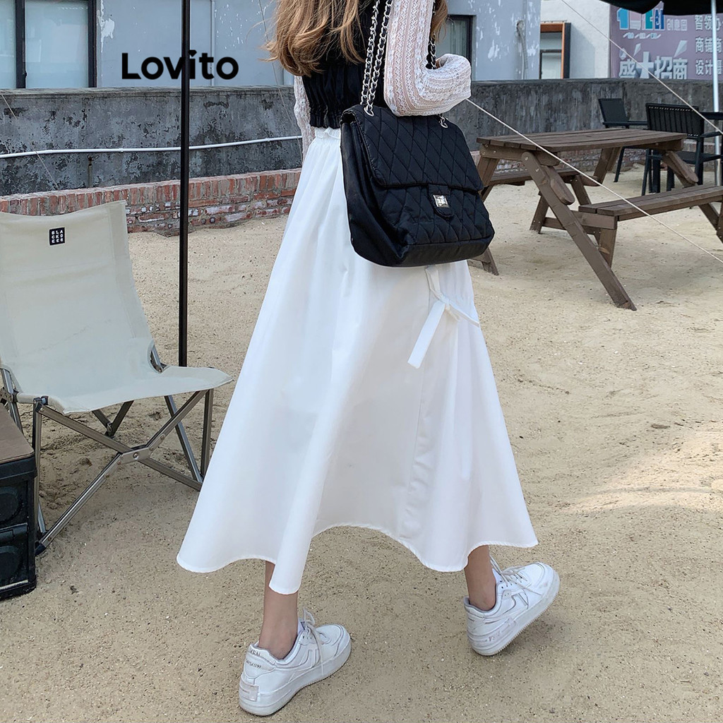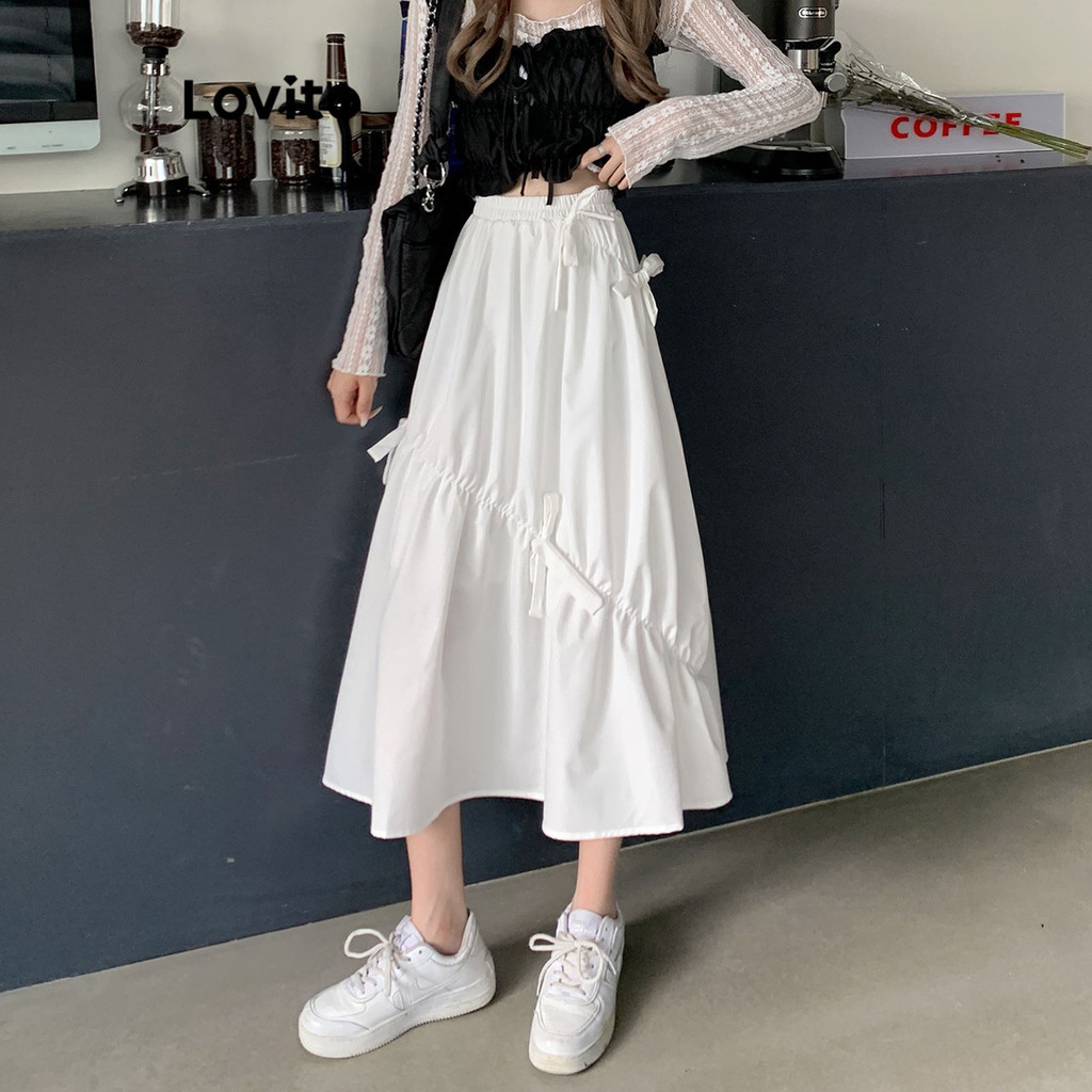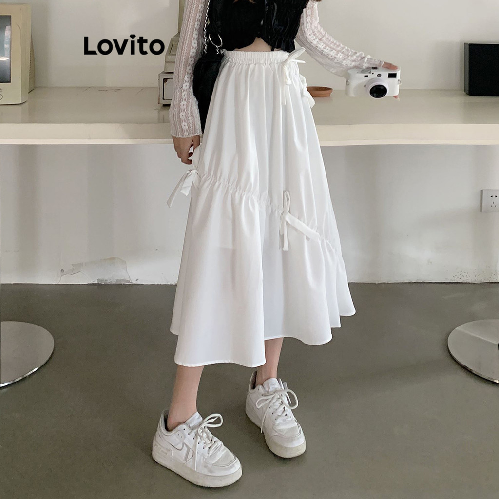 Lovito Chân Váy Chữ A Xếp Nếp Boho màu trơn cho nữ l52ad142 (Màu Trắng)