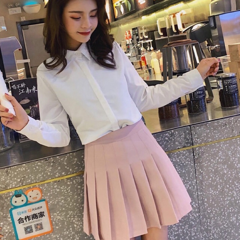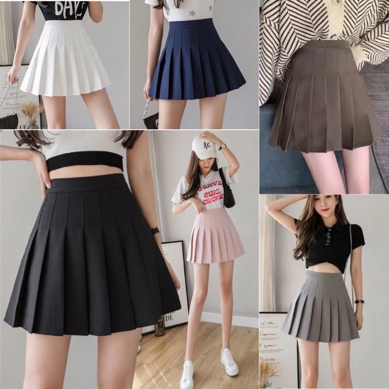 กระโปรงเทนนิส สีพื้น เสื้อผ้าแฟชั่นผู้หญิง กระโปรง กระโปรงสั้นเหนือเข่า กระโปรงน่ารักเกาหลีประเภทกระโปรง: กระโปรงจีบรอบตัว
