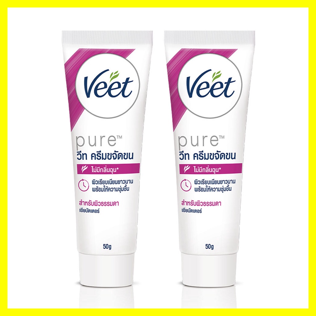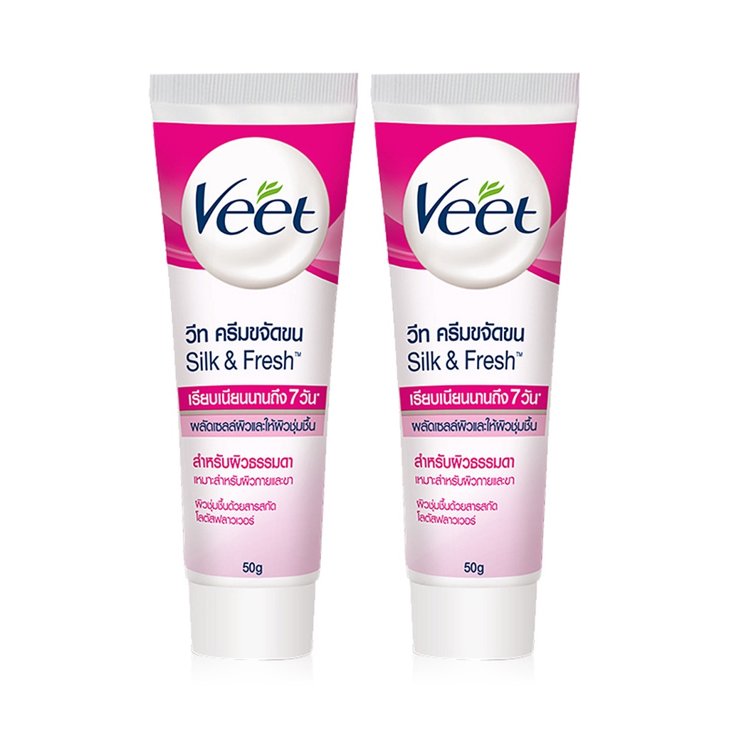 Veet Hair Removal Cream Lotus Milk & Jasmine Normal Skin [50g x 2pcs]ครีมขจัดขน สามารถขจัดขนได้อย่างมีประสิทธิภาพ ให้ผิวคุณเรียบเนียนน่าสัมผัสอย่างง่ายดาย คงความชุ่มชื้นไว้ที่ผิวได้อย่างมีประสิทธิภาพด้วยส่วนผสมไฮโดรเรสเตอร์ พร้อมด้วยส่วนผสมของโลตัส มิลค์ กลิ่นหอมของจัสมิน เหมาะสำหรับผิวธรรมดาวิธีใช้