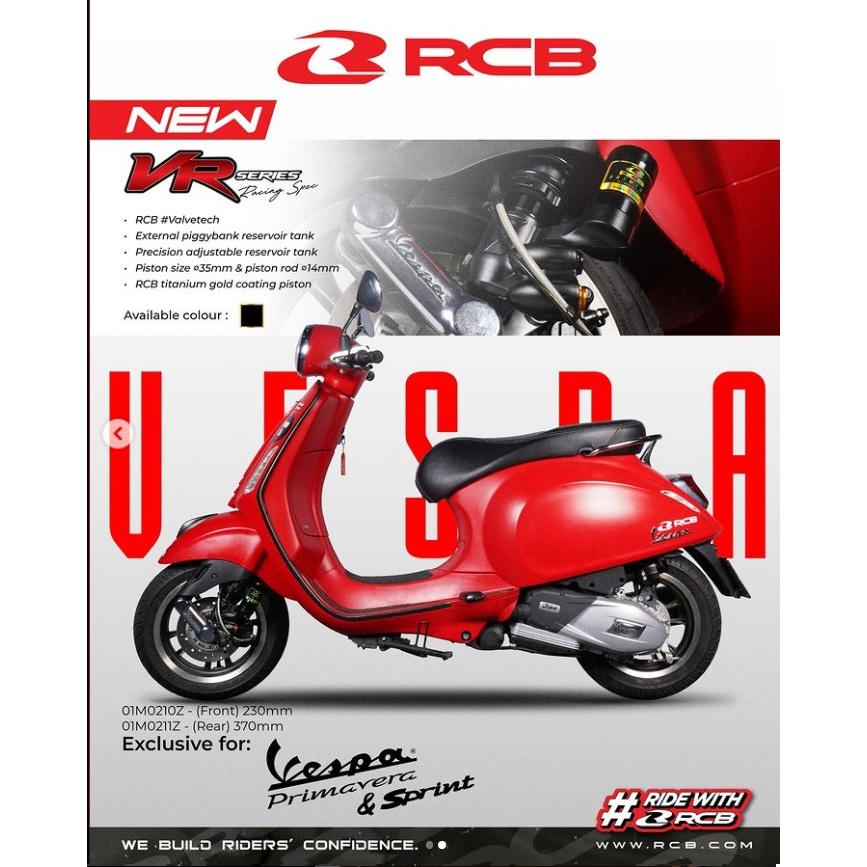โดยเฉพาะอย่างยิ่งสำหรับ Vespa Primavera และ Sprint เครื่องเล่นสกู๊ตเตอร์ที่อุดมไปด้วย RCB ไม่ค่อยมีรุ่น VR-Series และยังเป็นโช้คอัพ RCB ที่ดีที่สุดแม้กระทั่งด้านหน้าด้านหลังจะมีความสำคัญที่สุด ปรับเปลี่ยนได้เต็มที่ตามผู้ขับขี่ 🔥