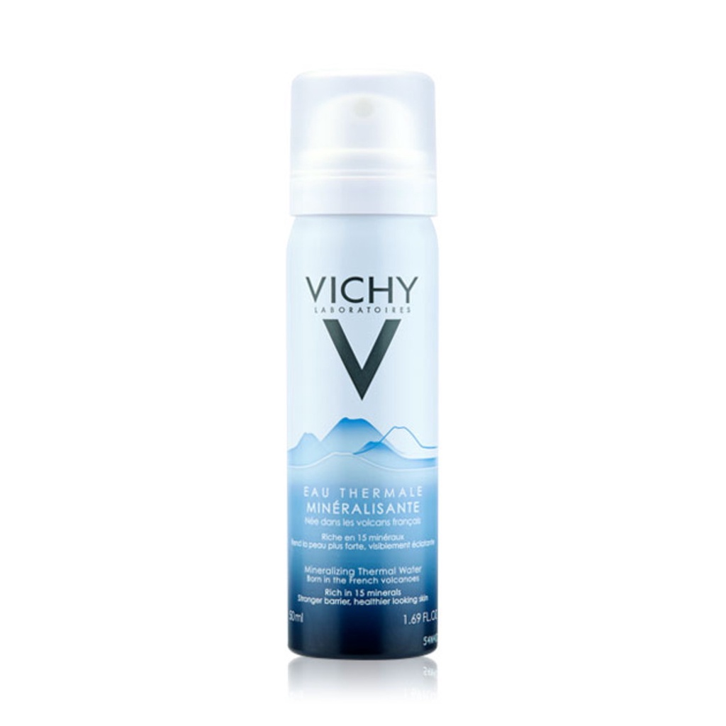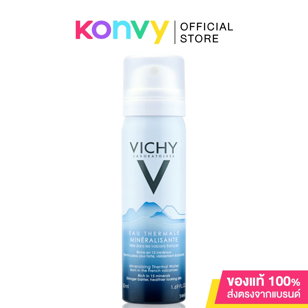 Vichy Mineralizing Thermal Water 50mlสเปรย์น้ำแร่จากธรรมชาติ 100 จากแหล่งภูเขาไฟในฝรั่งเศส ลึกลงไปใต้ผิวโลกกว่า 4,000 เมตร อุดมด้วยแร่ธาตุสำคัญกว่า 15 ชนิด มาพร้อม 3 คุณสมบัติเด่น ได้แก่ ปรับสมดุลค่า pH ผิว, เสริมการสร้างเซลล์ผิวใหม่ และเสริมปราการปกป้องผิว เพื่อผลลัพ์คือผิวที่แข็งแรงสุขภาพดี น้ำแร่วิชี่สามารถใช้ได้ในทุกโอกาส เมื่อรู้สึกว่าผิวถูกทำร้าย เช่น ผิวแห้ง เหนื่อยล้า เครียด, ผิวถูกมลภาวะ, ผิวถูกแสงแดด เป็นต้น