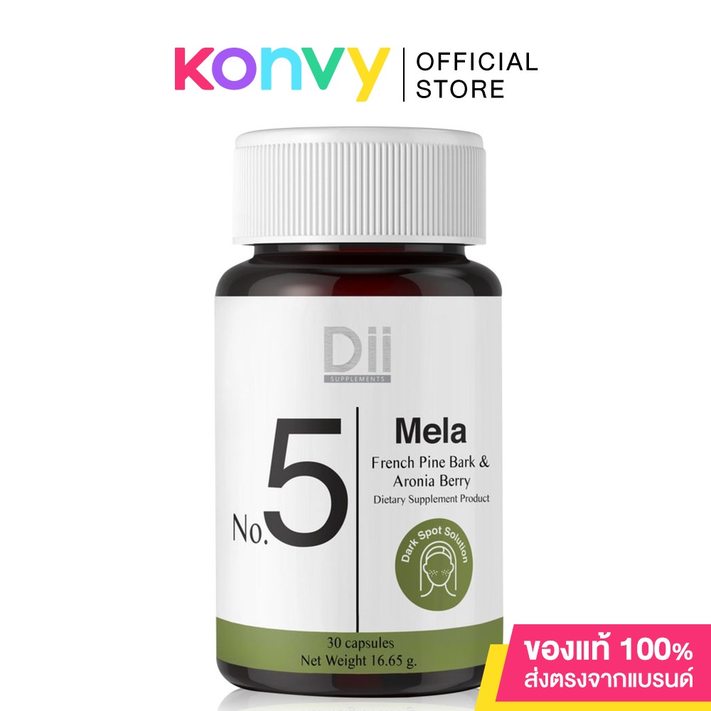 •Dii No.5 Mela 30 Capsules ผลิตภัณฑ์เสริมอาหารสารสกัดจากเปลือกสนฝรั่งเศส อะโรเนียเบอร์รี่ และดอกเบญจมาศป่า