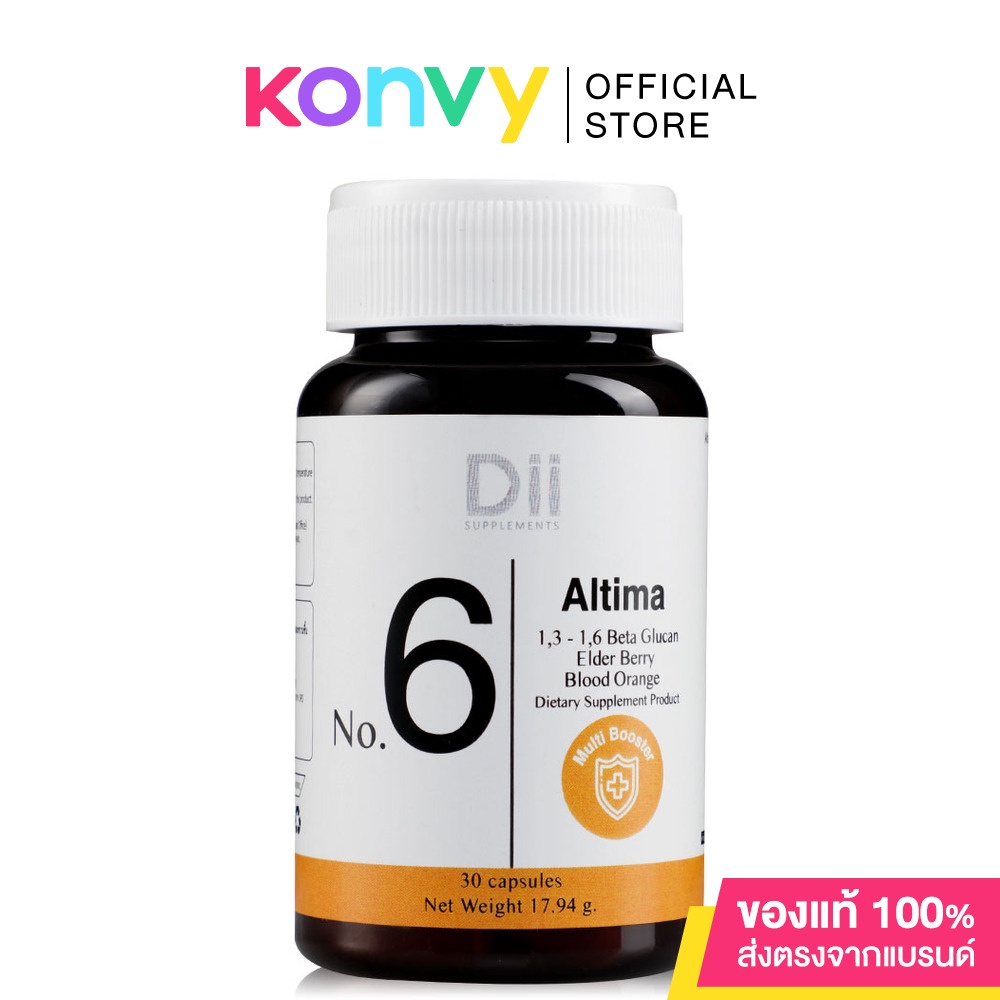 •Dii No.6 Altima 30 Capsules ผลิตภัณฑ์เสริมอาหารจากยีสต์ เบต้ากลูแคน, เอลเดอเบอร์รี่, สารสกัดจากส้มสีแดง และวิตามินอื่นๆ