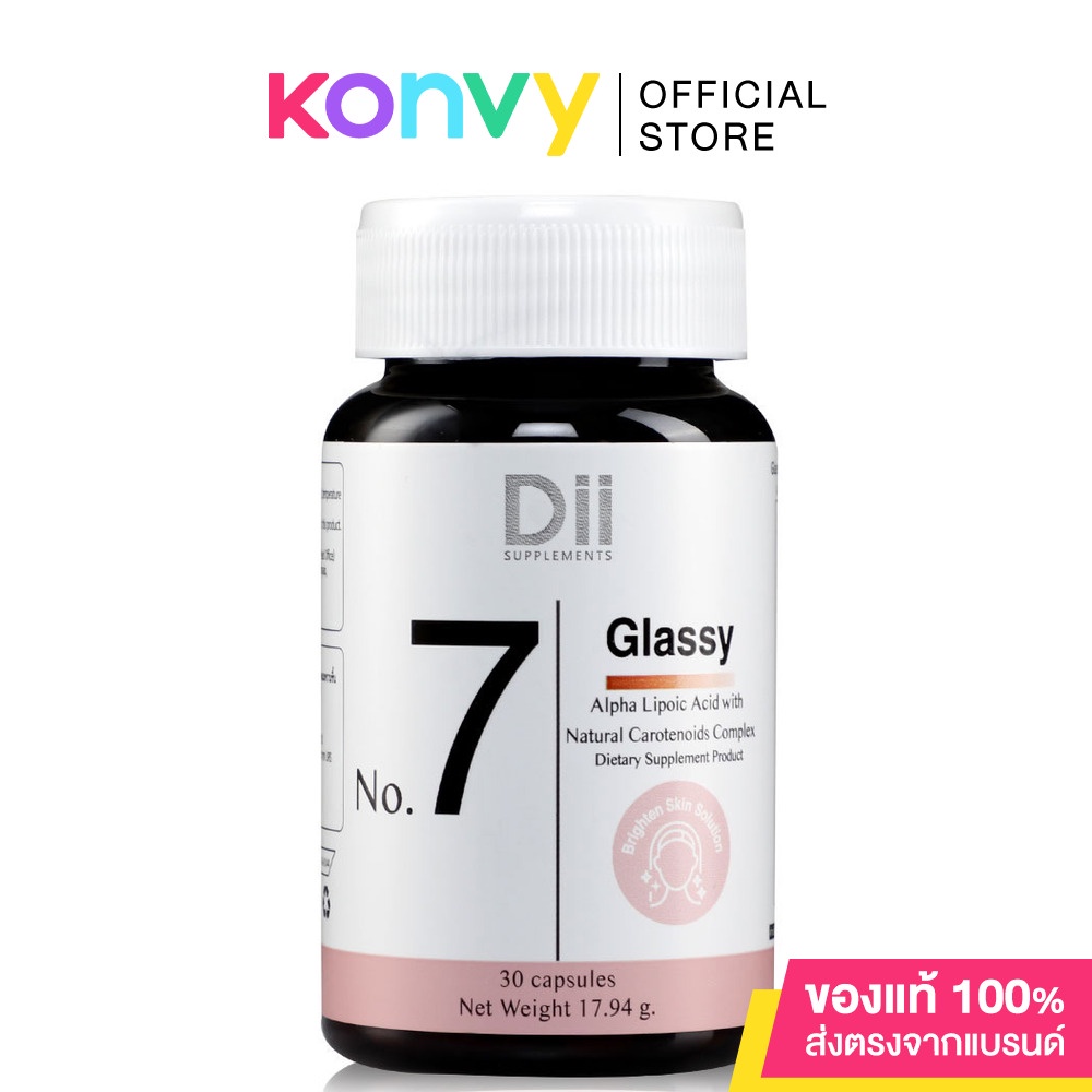 •Dii No.7 Glassy 30 Capsules ผลิตภัณฑ์เสริมอาหารสารสกัดจากเมล็ดองุ่น, มะกอก, มะเขือเทศ, มะขามป้อม, ดอกแมรี่โกลด์, ทับทิม, แครอท และวิตามิน