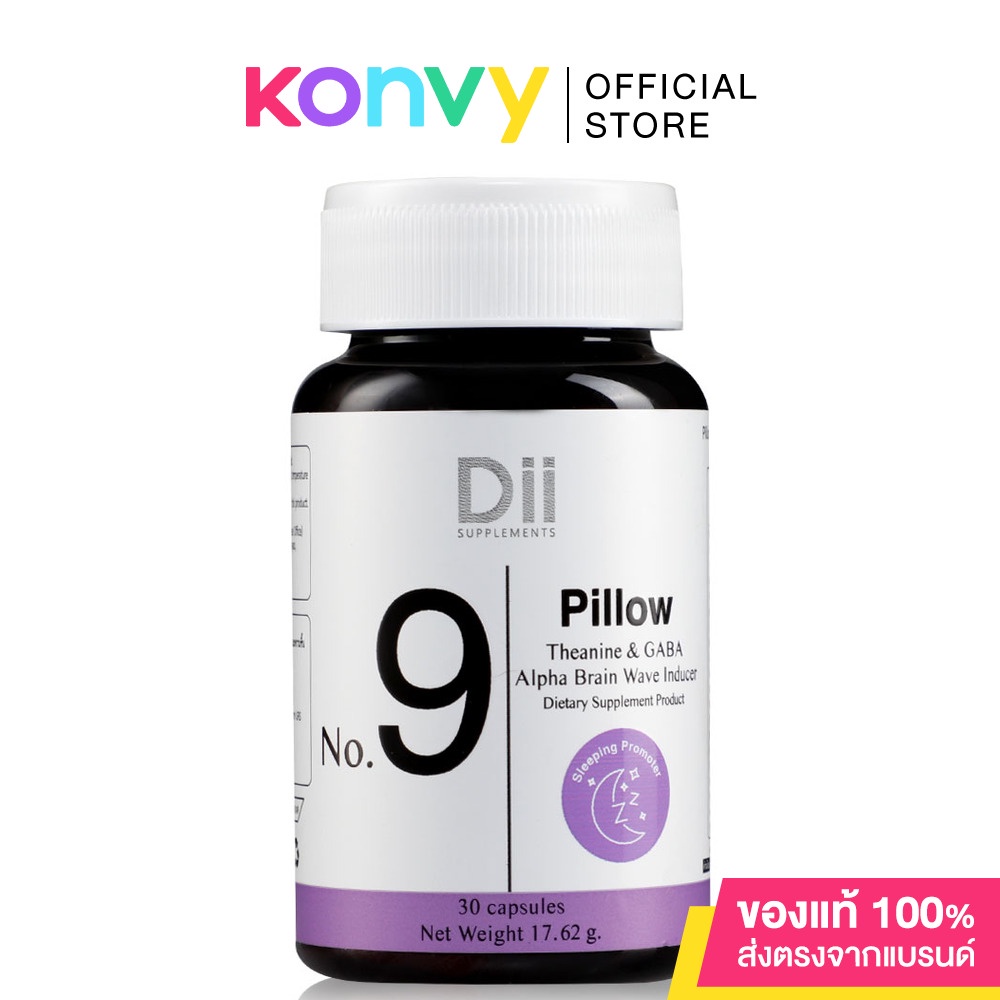 •Dii No.9 Pillow 30 Capsules ผลิตภัณฑ์เสริมอาหารด้วยสารสกัดจากเลมอนบาล์ม คาโมมายล์ เชอร์รี่ทาร์ต และวิตามินจำเป็น เช่น วิตามินบี 1, 6, 12