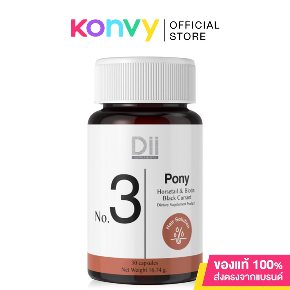 •Dii No.3 Pony 30 Capsules ผลิตภัณฑ์เสริมอาหารสารสกัดจากหญ้าหางม้า สารสกัดจากแบล็คเคอร์แรนท์ ไบโอติน วิตามินรวม และแร่ธาตุ