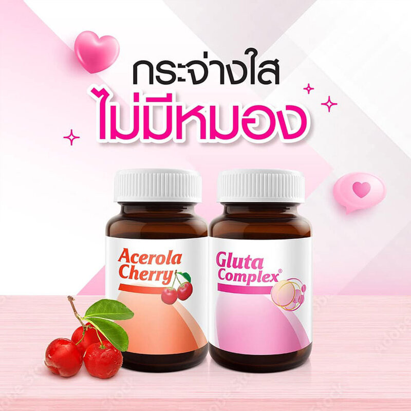 Cr.facebook.com/VistraClubVISTRA Set Skin Beauty Gluta Complex 800 Plus Rice Extract 30 Tablets + Acerola Cherry 1000mg Plus Citrus Bioflavavonoids 45 Tablets เซทผลิตภัณฑ์เสริมอาหารกลูต้า คอมเพล็กซ์ 800 มก. และสารสกัดจากอะเซโรล่า เชอร์รี่ 1000 มก.