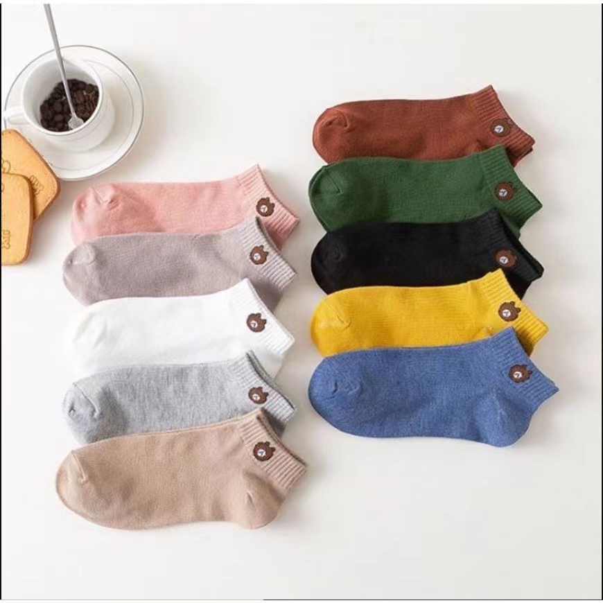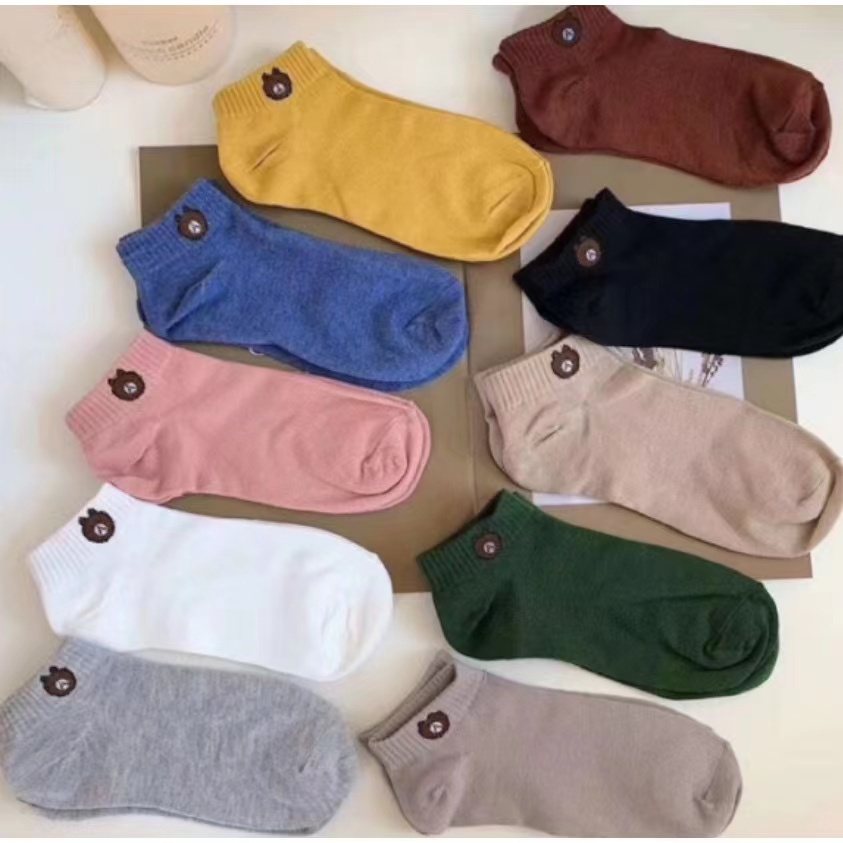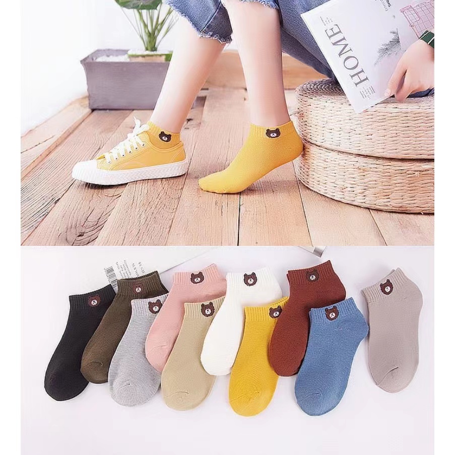 (Sẵn sàng để gửi) vớ Gấu 11 màu dễ thương (Mua 10 đôi cộng với Túi gấu) Ngắn