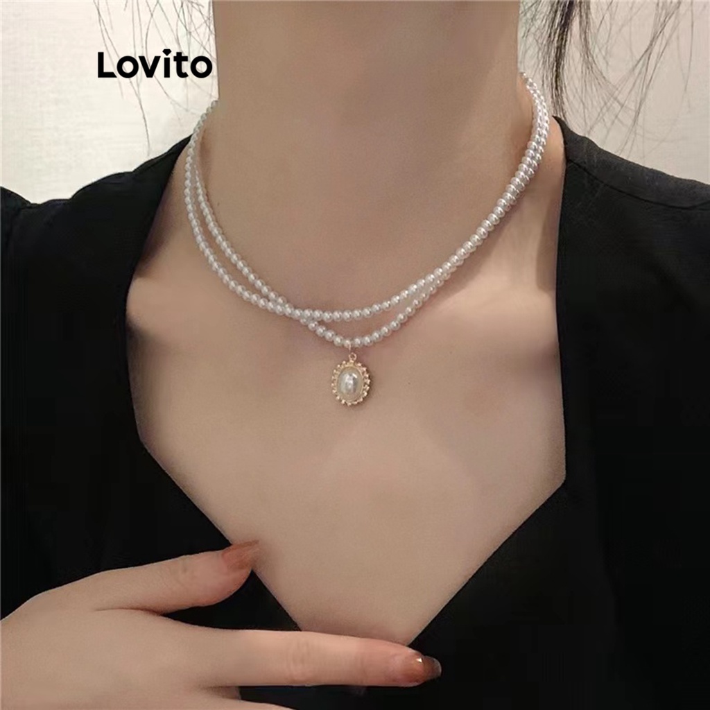 Vòng cổ mặt dây chuyền chữ thập Hoa Hồng lovito l57ad196 dành cho nữ (Trắng/Đen)
