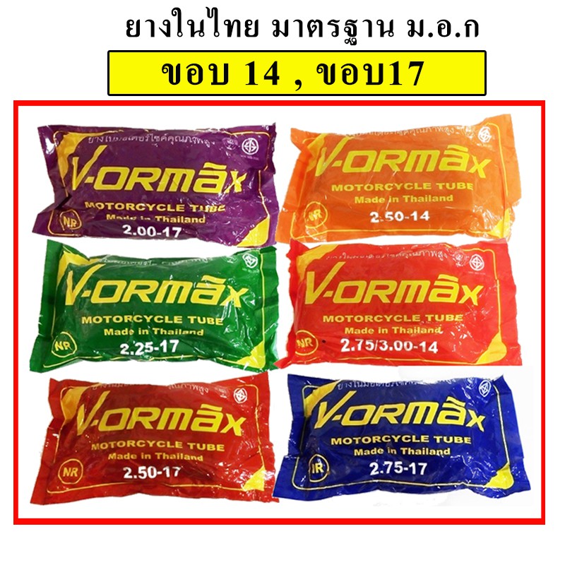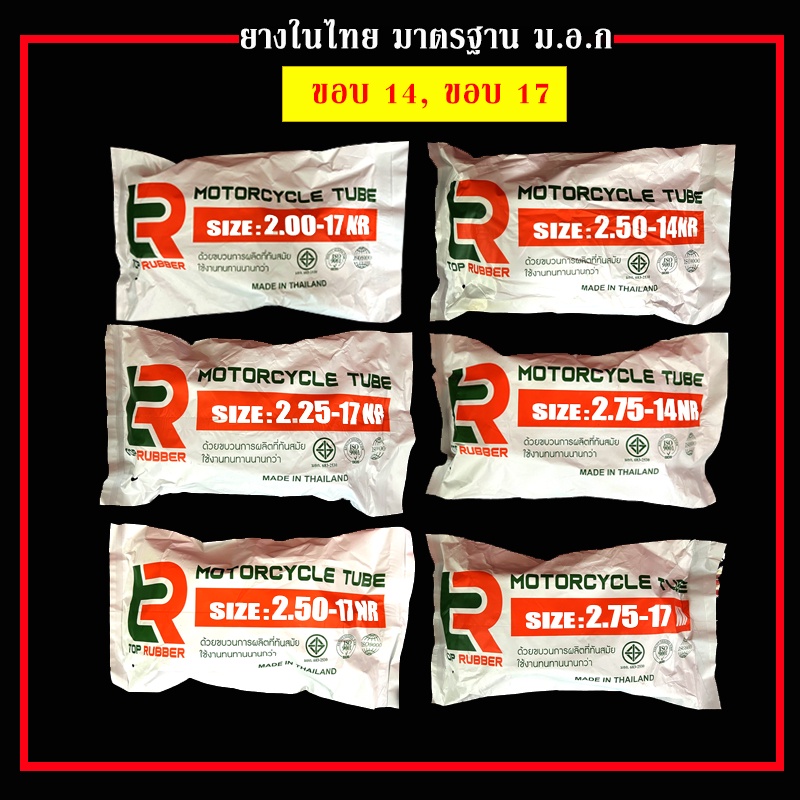 ยางในมอเตอร์ไซด์ ขอบ14 ขอบ17 (2.00-17,2.25-17,2.50-17,2.75-17,250-14,2.75-14)ผลิตในประเทศไทย