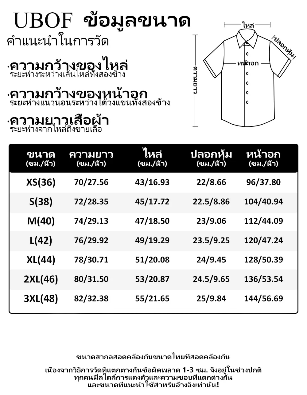 ล. แผนภูมิขนาดนี้ใช้สำหรับอ้างอิงเท่านั้น โปรดยอมรับความคลาดเคลื่อน1-3ซม. สำหรับการวัดด้วยมือ