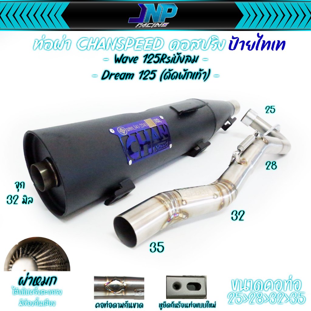 ท่อผ่าดังเวฟ 125 ชาญสปีด คอท่อไล่สปริงเสียงแน่นๆ วิ่งดีขึ้น100% W125เก่าทุกตัว