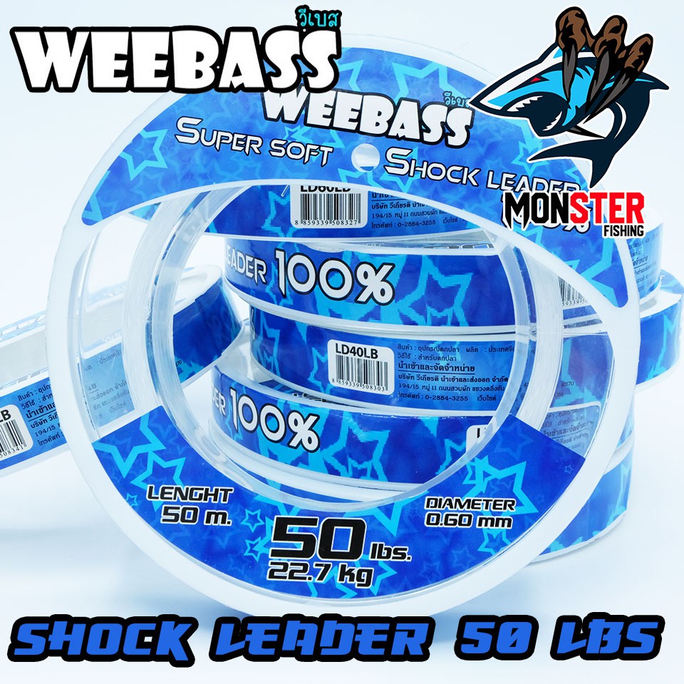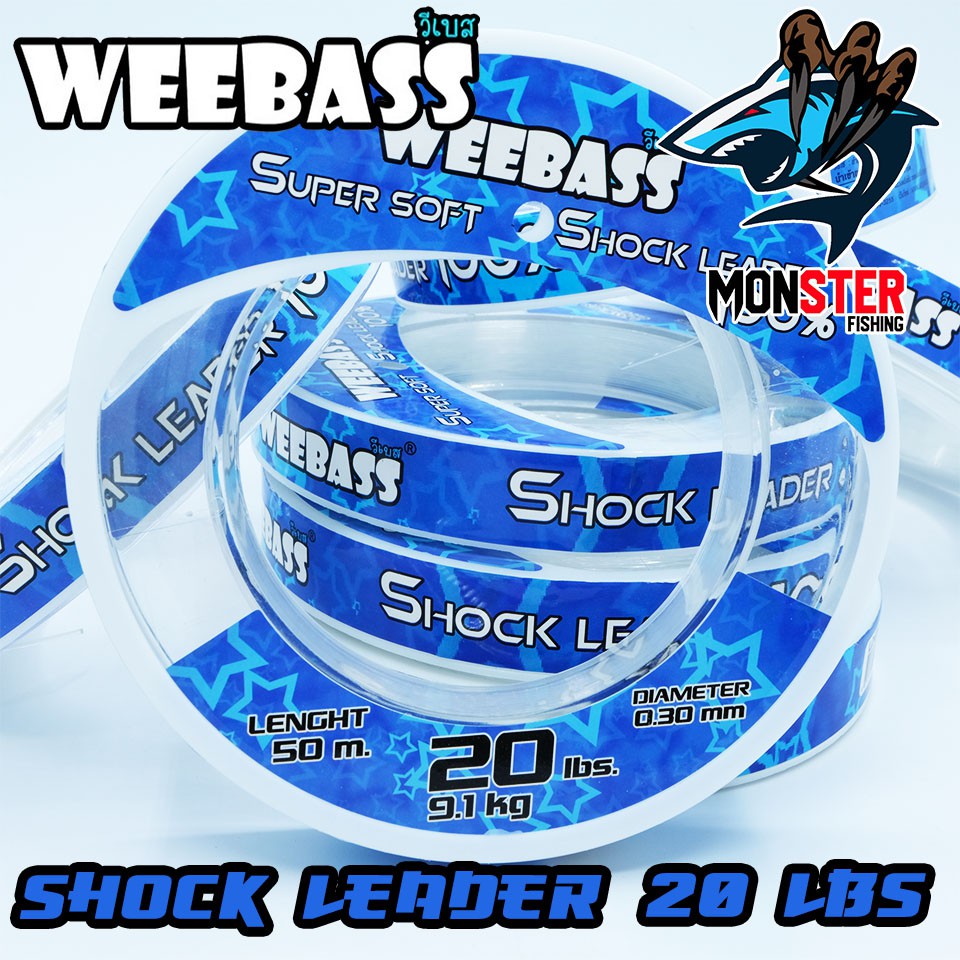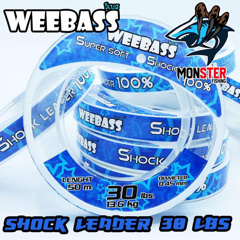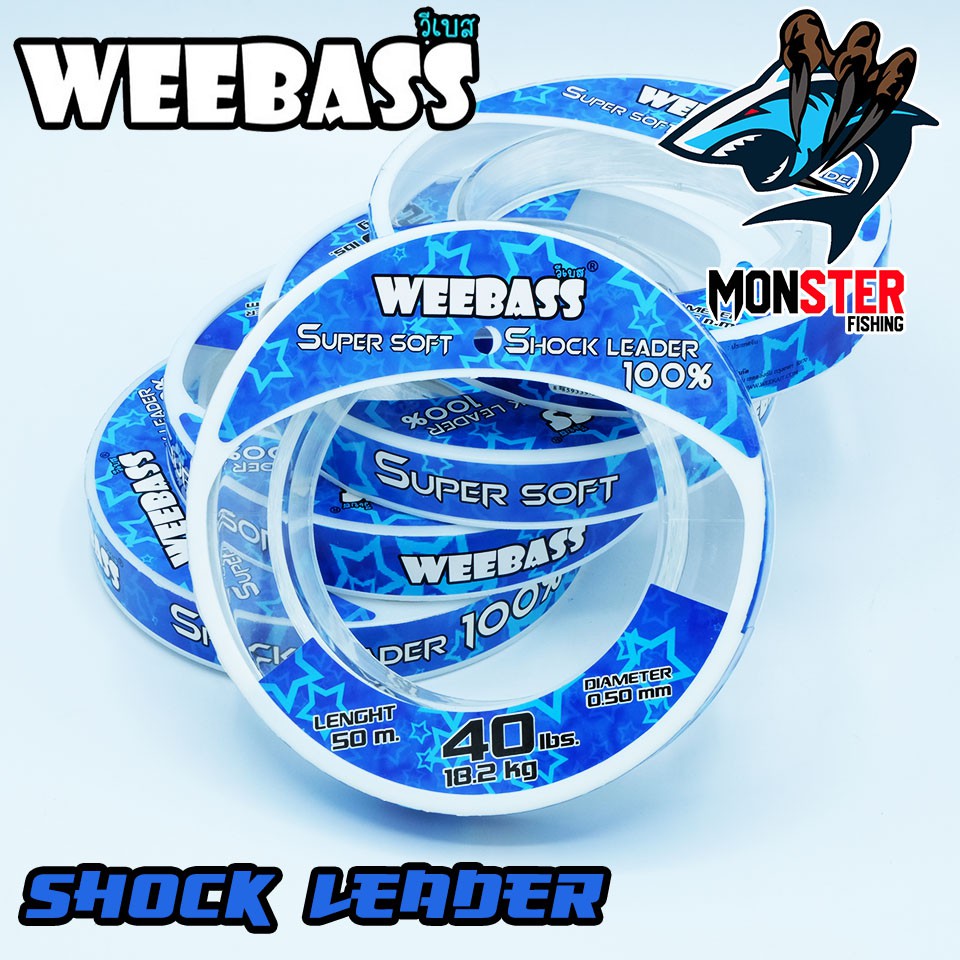 สายเอ็นหน้า ช๊อคลีดวีแบส WEEBASS SHOCK LEADER SUPER SOFT 100% ( ตกปลาฟันคม )# Shock Leader weebass เป็นสายที่ถูกออกแบบเพื่อนำมาใช้เป็นสายหน้า (Leader) เพื่อใช้ในการตกปลาฟันคมหรือแหล่งน้ำที่มีอุปสรรค์ใต้น้ำโดยเฉพาะ