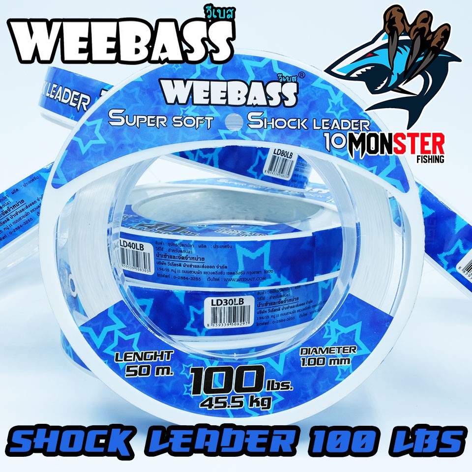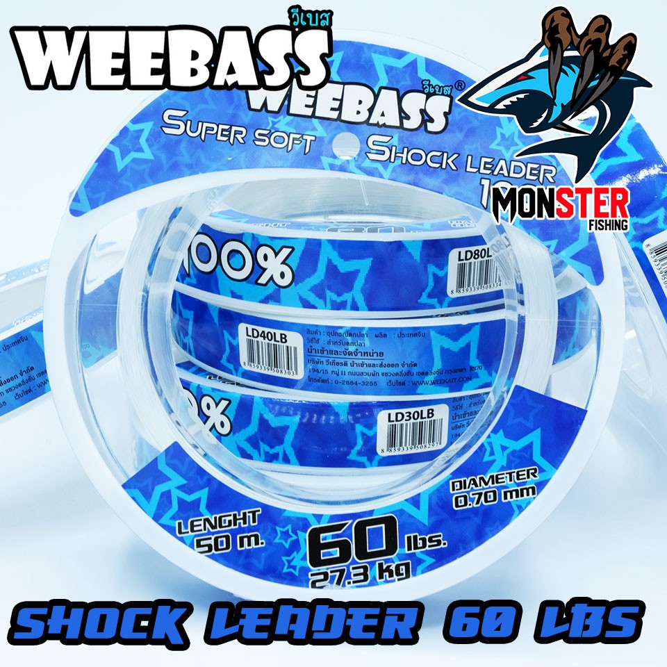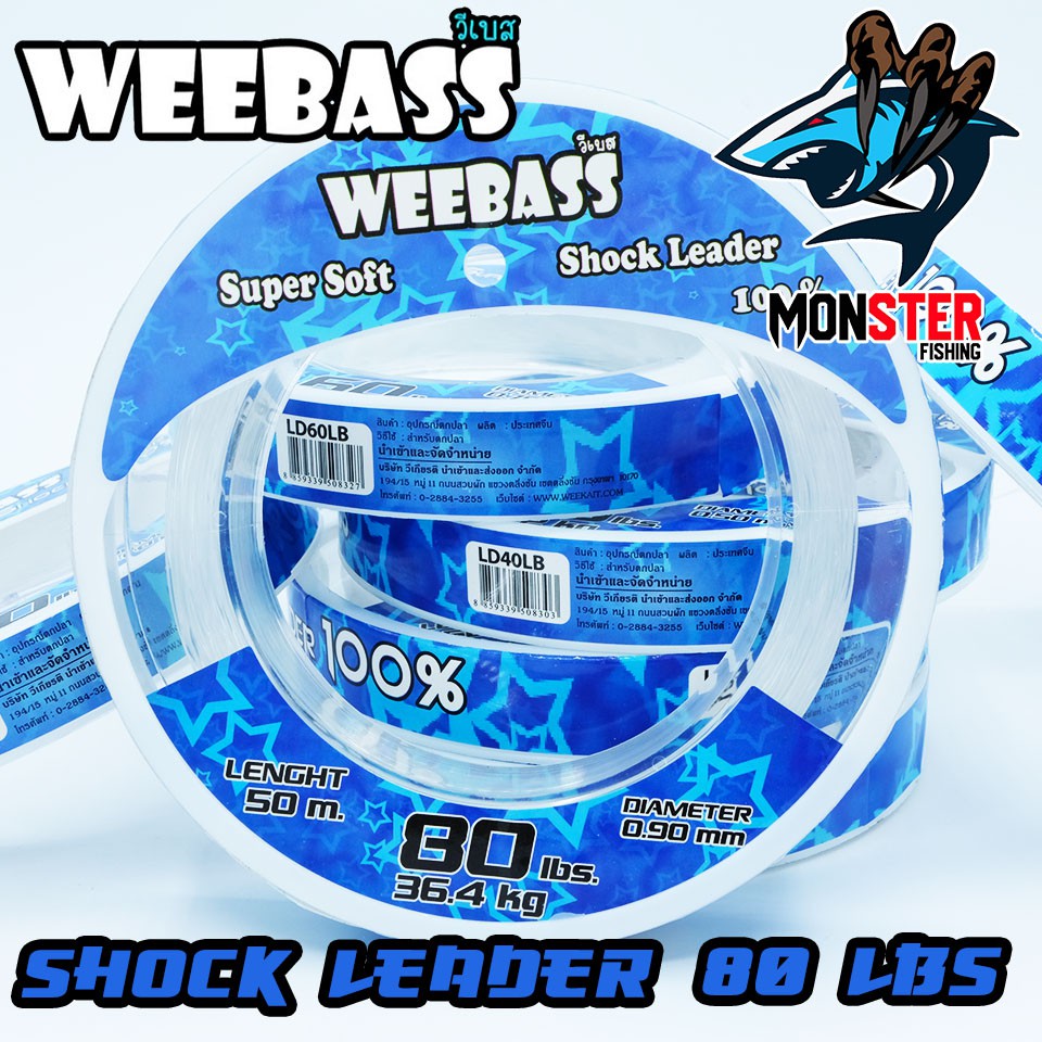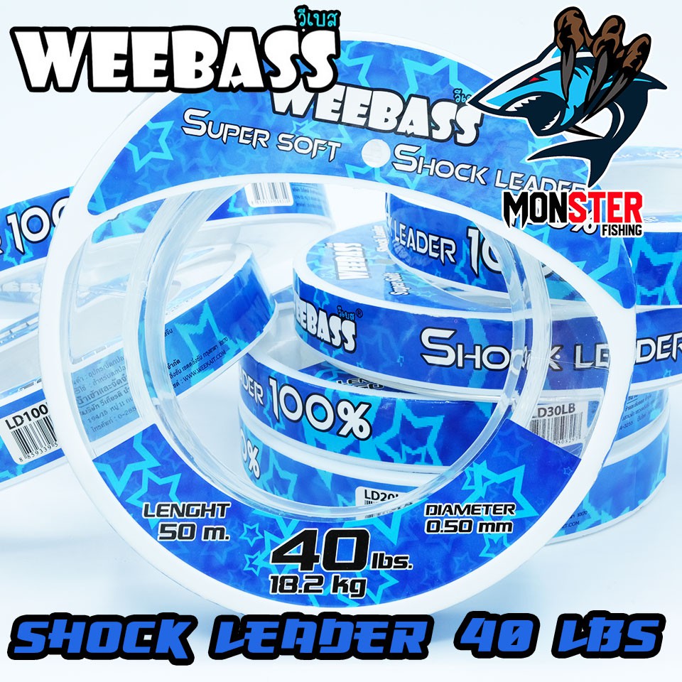 สายเอ็นหน้า ช๊อคลีดวีแบส WEEBASS SHOCK LEADER SUPER SOFT 100% ( ตกปลาฟันคม )# Shock Leader weebass เป็นสายที่ถูกออกแบบเพื่อนำมาใช้เป็นสายหน้า (Leader) เพื่อใช้ในการตกปลาฟันคมหรือแหล่งน้ำที่มีอุปสรรค์ใต้น้ำโดยเฉพาะ