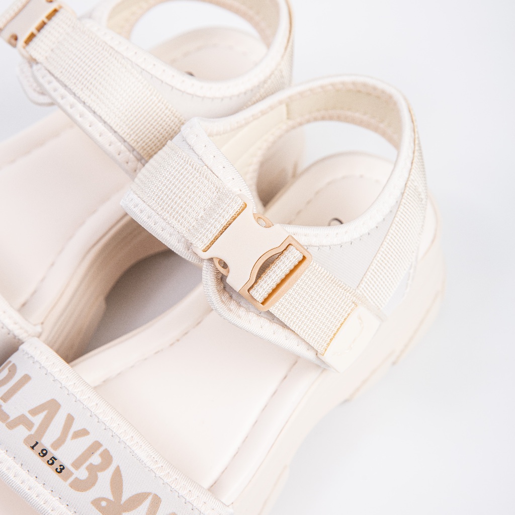 Giày đế bằng da thật Playboy Giày đế bằng thiết kế gót màu trơn với logo Dây chuyền nhựa màu ngọc lam 2 màu, màu kem và màu đen