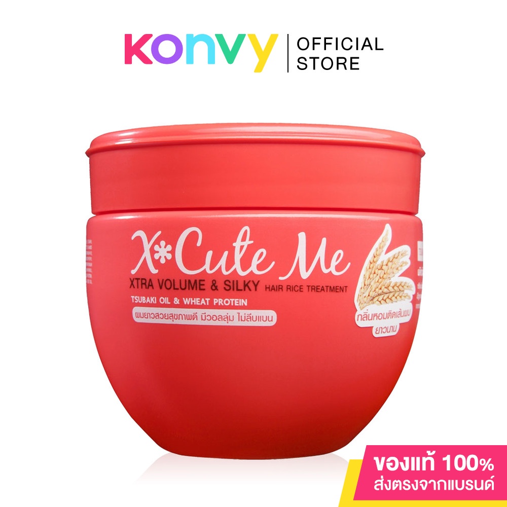 •Xcute Me Xtra Volume & Silky Hair Rice Treatment250mlทรีตเมนต์บำรุงผมสูตรผสมน้ำมันจากดอกสึบากิและโปรตีนข้าวสาลี กลิ่นหอมติดทนนาน ช่วยให้ผมแข็งแรง มีน้ำหนัก นุ่มสลวย สุขภาพดี
