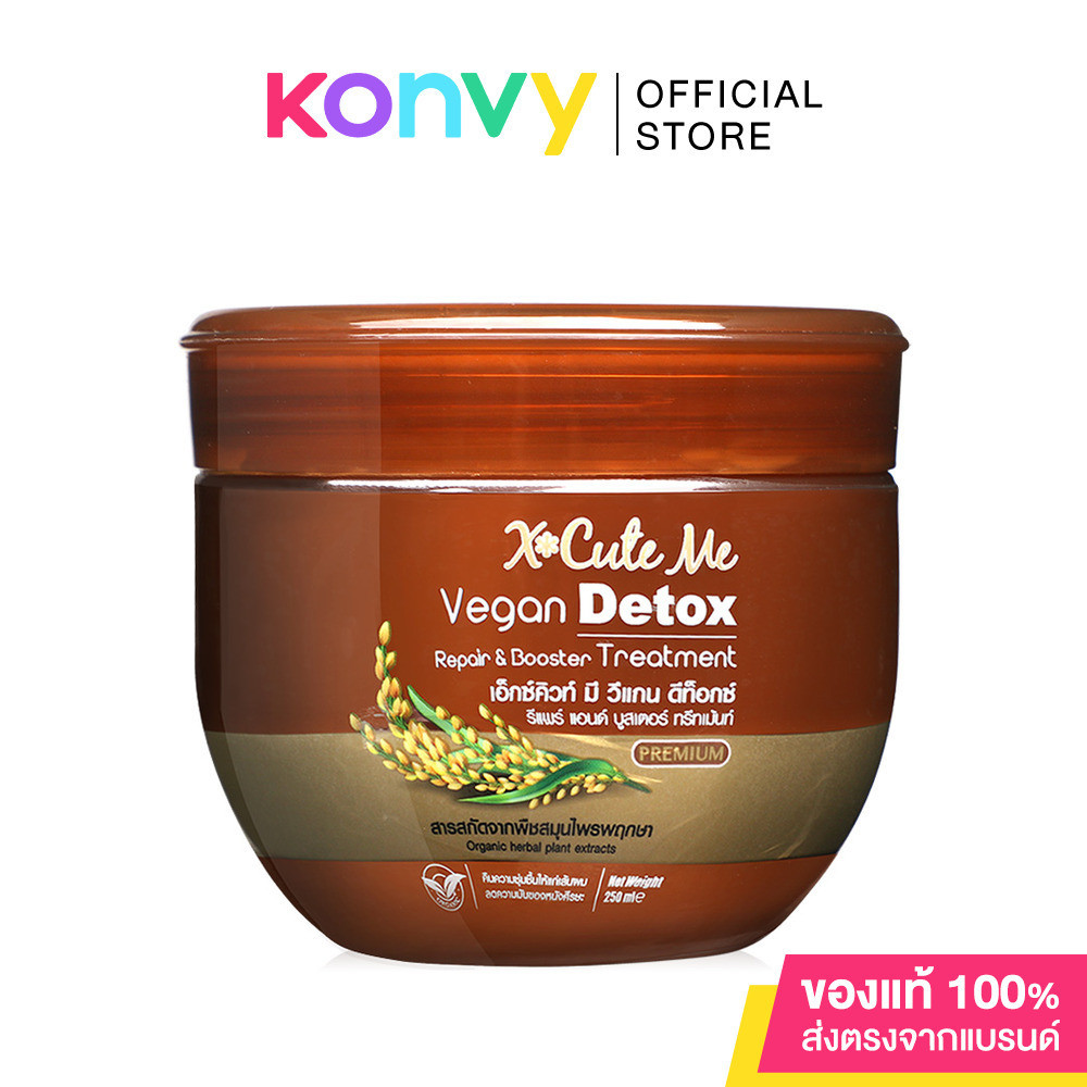 •Xcuteme Vegan Detox Repair & Booster Treatment250mlทรีตเมนต์ดูแลเส้นผมและหนังศีรษะ ด้วยแร่โคลนจากธรรมชาติ ช่วยชำระสารเคมีที่ตกค้างบนเส้นผมและหนังศีรษะ ดูดซับสิ่งสกปรกจากมลภาวะและความมันที่หลงเหลืออยู่บนเส้นผม ผสาน Bamboo Charcoal ช่วยดีท็อกซ์เส้นผมและหนังศีรษะ คืนความชุ่มชื้นให้แก่เส้นผม ผมลื่นสลวยจัดทรงง่าย อีกทั้งมี Green Tea Extract สารสกัดจากชาเขียว ลดอาการคันของหนังศีรษะ ซึ่งจะทำให้เส้นผมมีความแข็งแรง เงางาม และนุ่มลื่น พร้อมกลิ่นหอมละมุนที่ช่วยให้ความรู้สึกผ่อนคลายระหว่างการใช้งาน