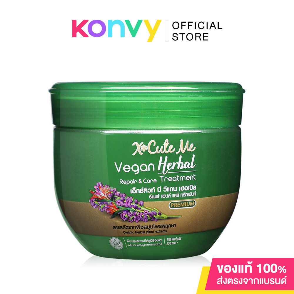 •Xcuteme Vegan Herbal Repair & Care Treatment250mlทรีตเมนต์บำรุงผม ฟื้นบำรุงเส้นผมให้ดูมีชีวิตชีวา พร้อมให้ความอ่อนโยนไม่ก่อให้เกิดอาการระคายเคือง ช่วยให้ผมมีความนุ่มลื่น สัมผัสได้ตั้งแต่ชโลมลงบนเส้นผมขณะเปียก อุดมด้วยสารสกัดสำคัญจากพืชหลากหลายชนิดที่ช่วยฟื้นบำรุงหนังศีรษะและเส้นผมให้ผมสลวย นุ่มลื่น เงางามดุจเส้นไหม จัดทรงง่าย แลดูมีสุขภาพดี มีน้ำหนัก ไม่ชี้ฟู พร้อมกลิ่นหอมละมุนจากธรรมชาติที่ช่วยให้ความรู้สึกสดชื่น ผ่อนคลาย ติดทน