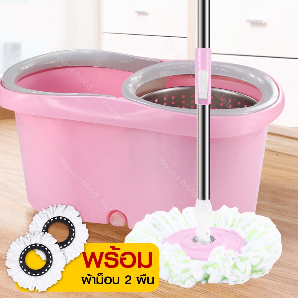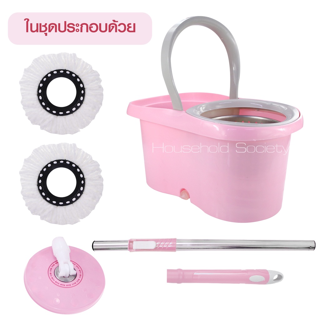 ชุดถังปั่นสแตนเลส + ไม้ถูพื้น ไม้ถูพื้นถังปั่น สปินม็อบ ถังถูพื้น Spin mop ไม้ม็อบ พร้อมผ้า 2 ผืน HHsociety