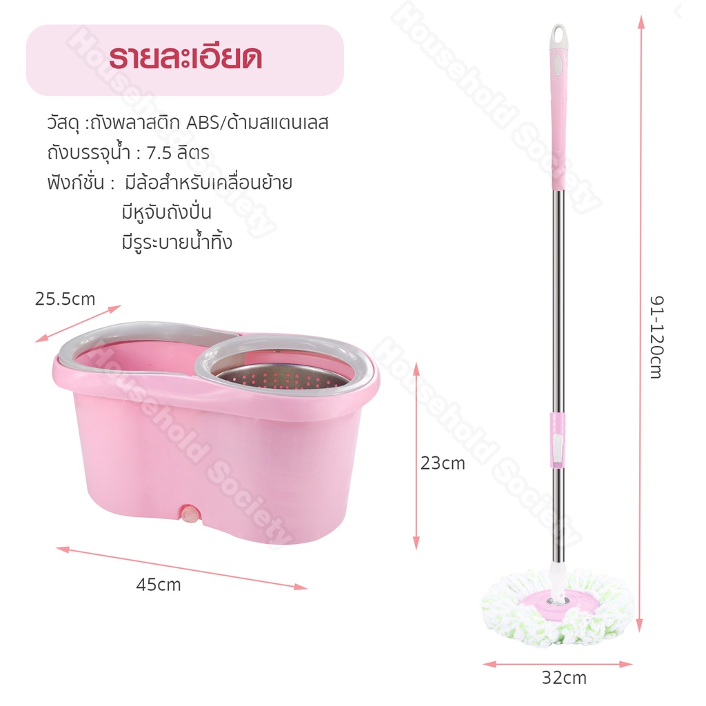 - นำผ้าหมาดขึ้นจากถังปั่น ถูพื้นได้ทันที