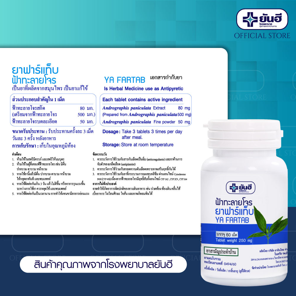 - มีสาร Andrographolide สูงถึง 5.5มก ต่อเม็ด