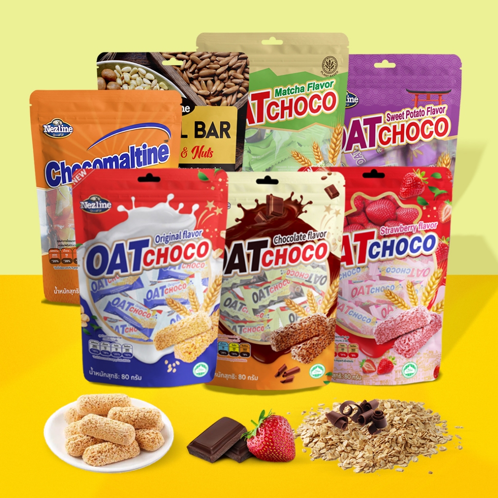 🔥 Oat Choco Nezline ขนมข้าวโอ๊ตอัดแท่ง ห่อเล็ก มี 8 รสชาติ น้ำหนัก 80 กรัม (ของแท้ต้องตราเนสไลน์ มีเลข อย.จดแจ้ง) 🔥✔ ข้าวโอ๊ตอัดแท่ง ผลิตจากข้าวโอ๊ตแท้ 100%
