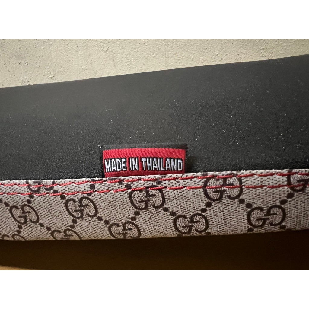 เย็บตะเข็บสีแดง เส้นคู่ และติดริบบิ้น MADE IN THAILAND ให้