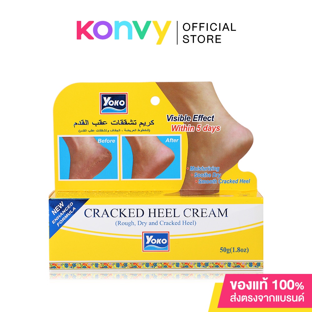 Yoko Cracked Heel Cream 50gครีมบำรุงผิวสำหรับส้นเท้า ช่วยคงความชุ่มชื้น ทำให้ผิวหนังบริเวณส้นเท้าอ่อนนุ่ม เหมาะสำหรับส้นเท้าที่แห้ง ให้คุณเปิดเท้าได้อย่างมั่นใจ และช่วยในการคงความชุ่มชื้นของผิวบริเวณส้นเท้าให้ดูเป็นธรรมชาติ จนคุณสังเกตได้ทันทีที่เริ่มใช้ ใช้ได้กับจุดสัมผัสแห้งกร้านอื่นๆ เช่น ข้อศอก ตาตุ่ม และหัวเข่า• เหมาะสำหรับส้นเท้าที่แห้ง