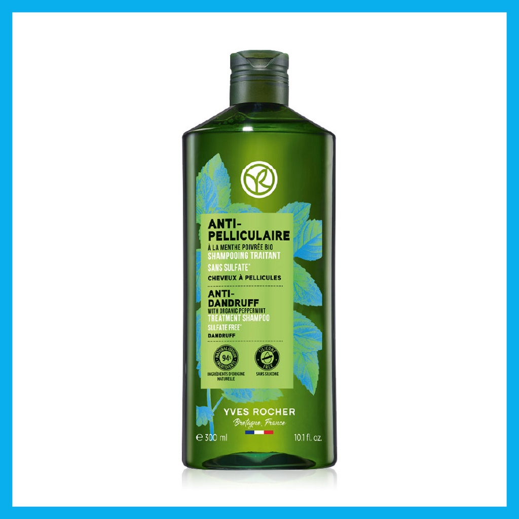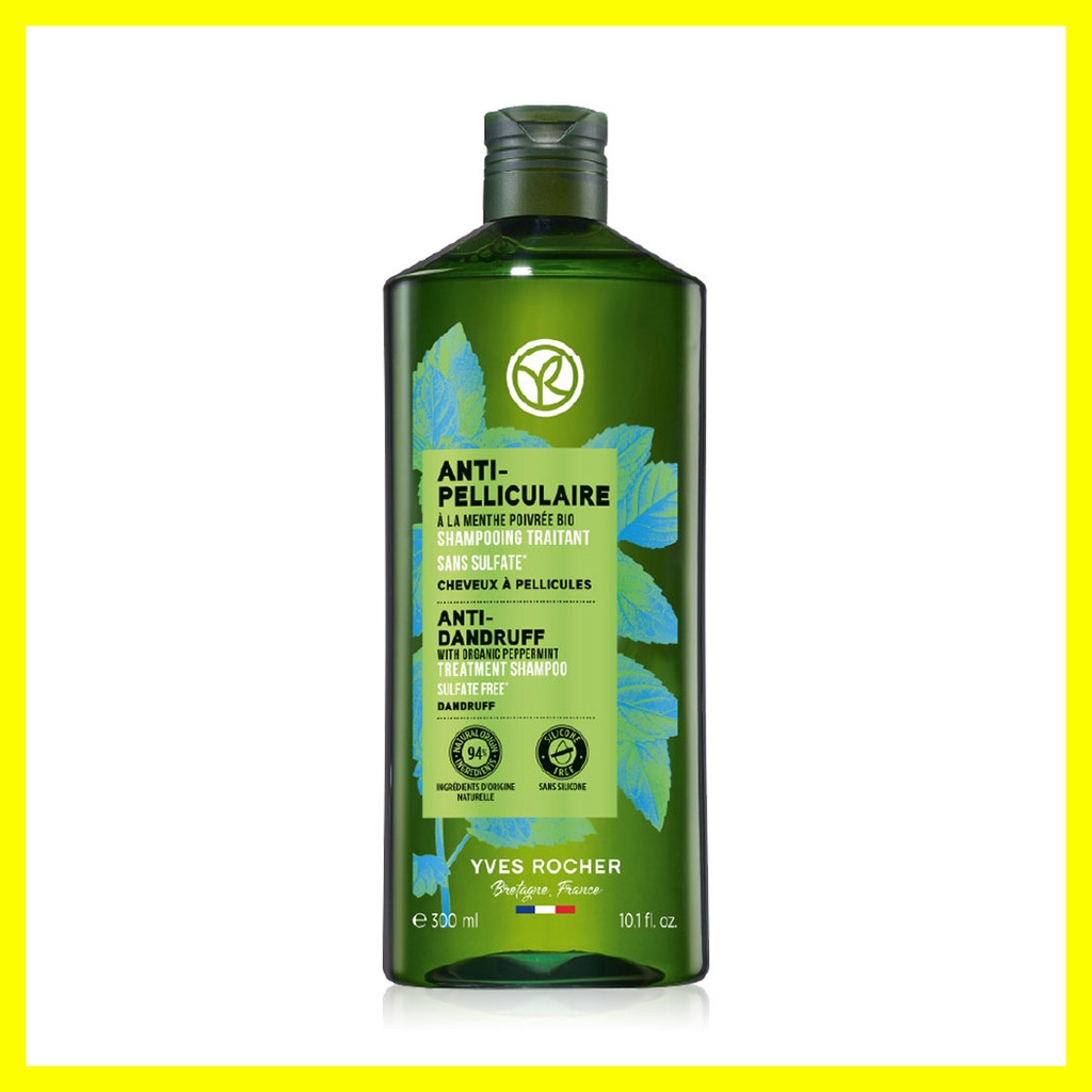 Cr.facebook.com/YvesRocherHongKongYves Rocher Anti-Dandruff With Organic Peppermint Treatment Shampoo 300ml แชมพูขจัดปัญหารังแคเรื้อรังพร้อมป้องกันการเกิดซ้ำด้วยออแกนิคเปปเปอร์มินต์วอเตอร์จากลากาซิลี่และส่วนผสมจากธรรมชาติ 94% ปราศจากซัลเฟตและซิลิโคน ทำความสะอาดหนังศีรษะอย่างอ่อนโยน คืนสมดุลหนังศีรษะสะอาดสดชื่น