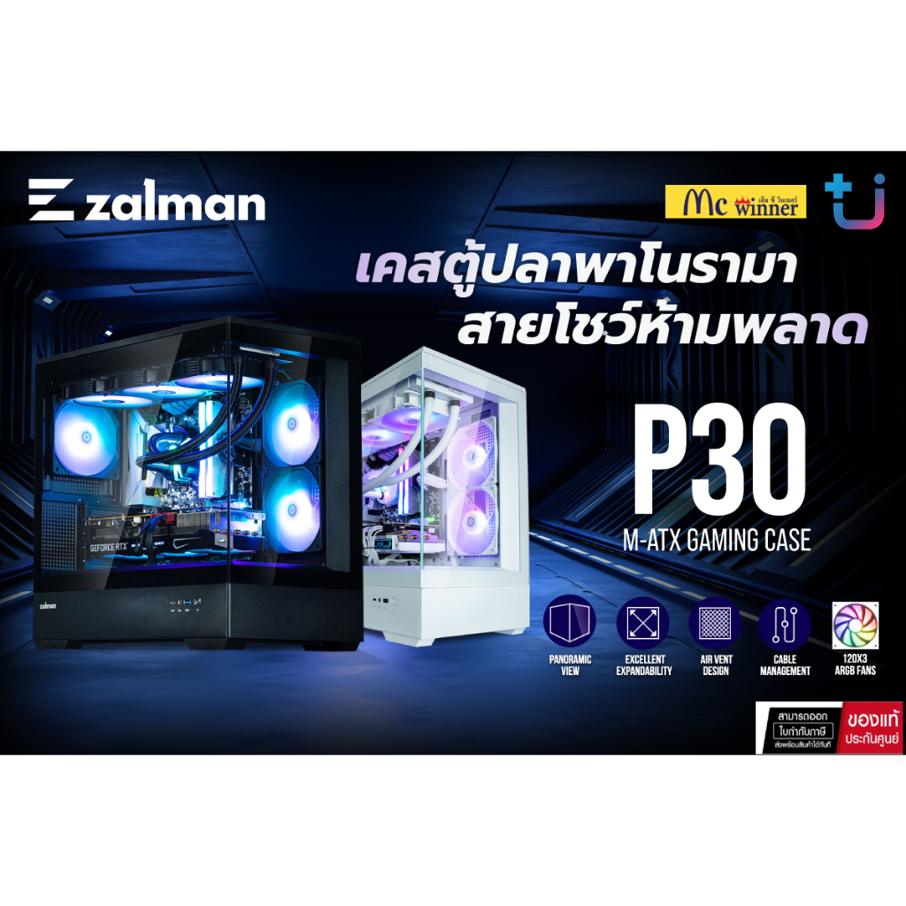-เคสขนาด Micro ATX Mini Tower รุ่น ZALMAN P30 บอกเลยว่าตัวนี้ออกแบบมาเอาใจสายโชว์ แบบคลีน ๆ ที่ชอบความสะอาดตา และดูทันสมัย ติดตั้งพัดลม ARGB ขนาด 120mm มาให้ 3 ตัว สามารถซิงค์ไฟกับเมนบอร์ด และรองรับการติดตั้งพัดลมสูงสุดถึง 9 ตัว พร้อมการออกแบบการไหลเวียนของอากาศได้อย่างดีเยี่ยม มีให้เลือก 2 สี คือ สีขาว และสีดำ